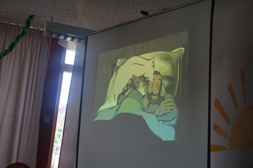 Gebannt verfolgten die Kinder die Erzählung, nach dem Bilderbuch von Kobi Yamada. Die Geschichte eines neugierigen Mädchens und einer außergewöhnlichen, kleinen Süßigkeitenschale….. es geht um Geduld und Dankbarkeit.