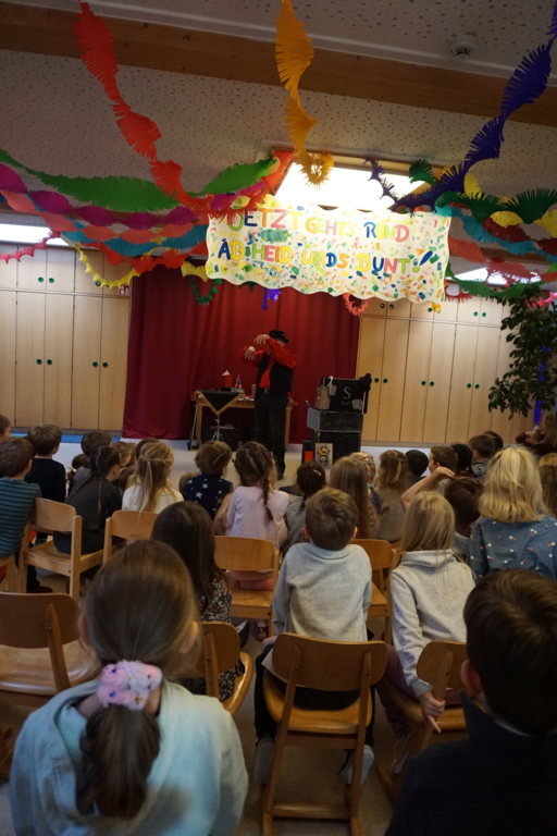Nach einer besinnlichen Adventszeit mit viel Zauber, Magie und Gemütlichkeit, treffen wir uns am letzten Tag vor den Ferien in der Halle zur gemeinsamen Weihnachtsfeier. Es wird eine Geschichte erzählt, gemeinsam gesungen und alle spüren: "Jetzt ist Weihnachten nicht mehr weit!"