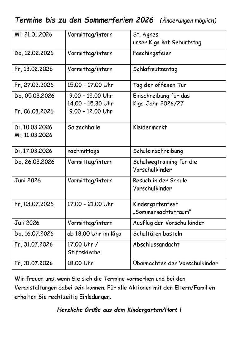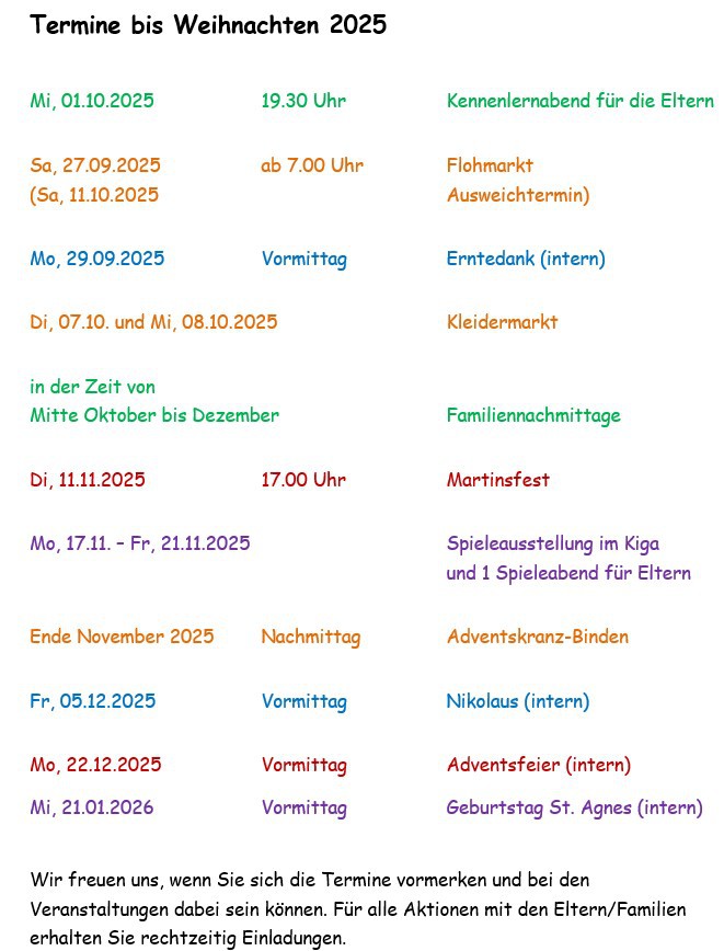 für alle Veranstaltungen erhalten Sie rechtzeitig Einladungen mit genauen Angaben.